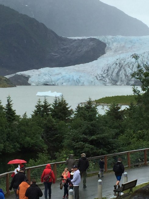 Seeing a glacier in a bay is different then seeing it more inland ending in a lake like the Mendenhall Glacier in Juneau. I saw that glacier first in 2002 and then again two days ago. I was shocked by how much it had retreated! There was even a time-lapse movie of how it has changed from 2007 until now. Imagine six years more of melting! Hundreds of feet of glacier has disappeared. Diminishing it!