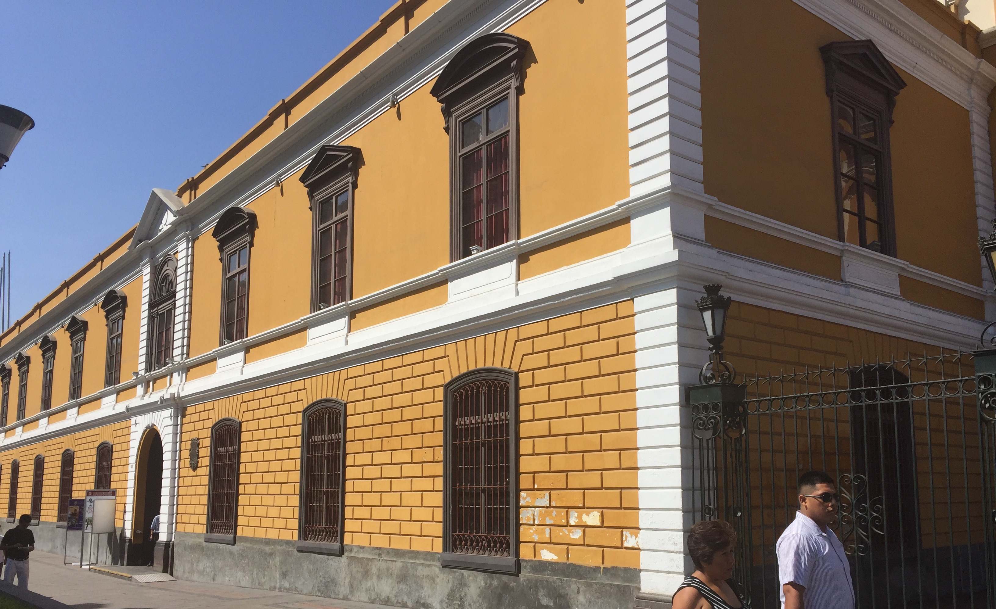 Our first stop was the original campus of the University of San Marcos. The first university in the Americas, this school was ‘public,’ a student only had to be from a royal family, a good Catholic, be the result of a legal, church approved marriage, and past a grammar test in Spanish and Latin. Oh one student ever got in who was illegitimate, and he was very important to the history of Peru.