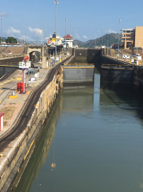 We reached the entrance of the Canal early in the morning and entered the first lock of Mariflores at about 9 am. It was a Party atmosphere as everyone was on deck to view the lock process.