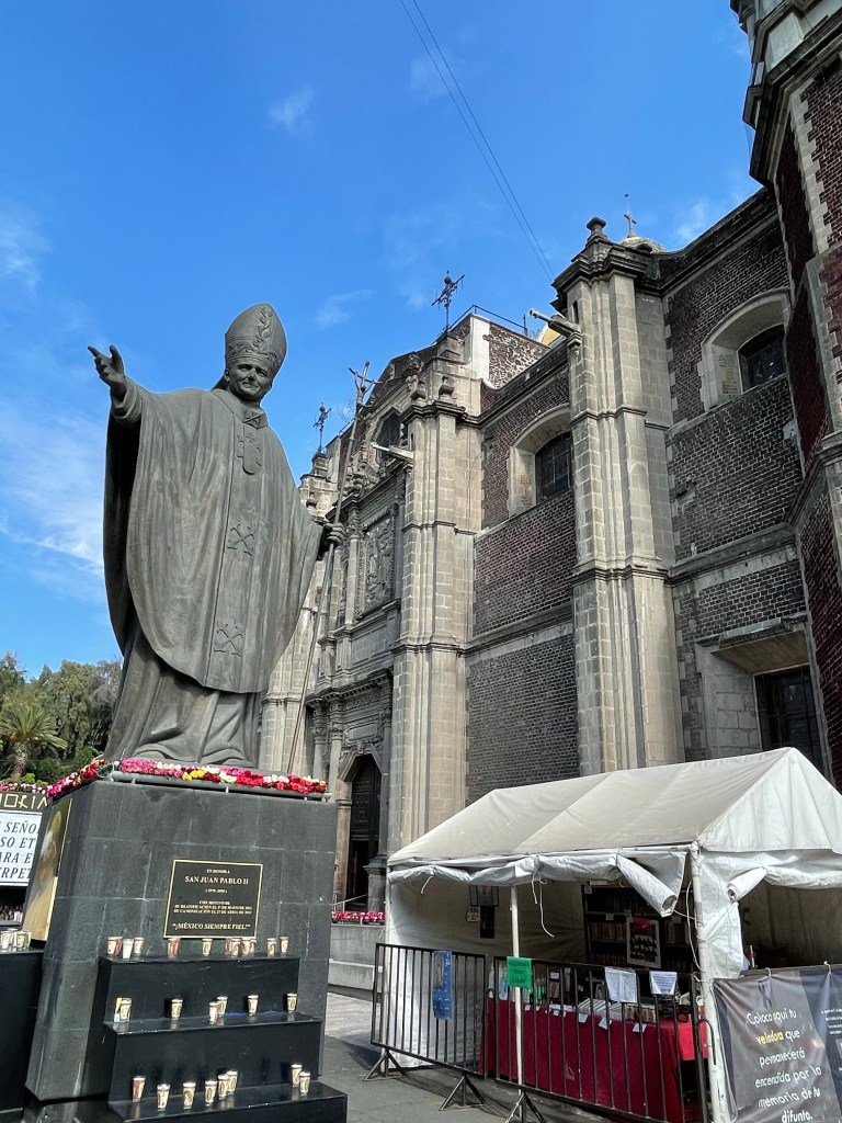 There is a large open plaza on one side of the Basilica. It is here that Pope John Paul came to dedicate the site. A statue to him stands between the old and new basilicas. He also came here a second time to canonize Juan Diego.