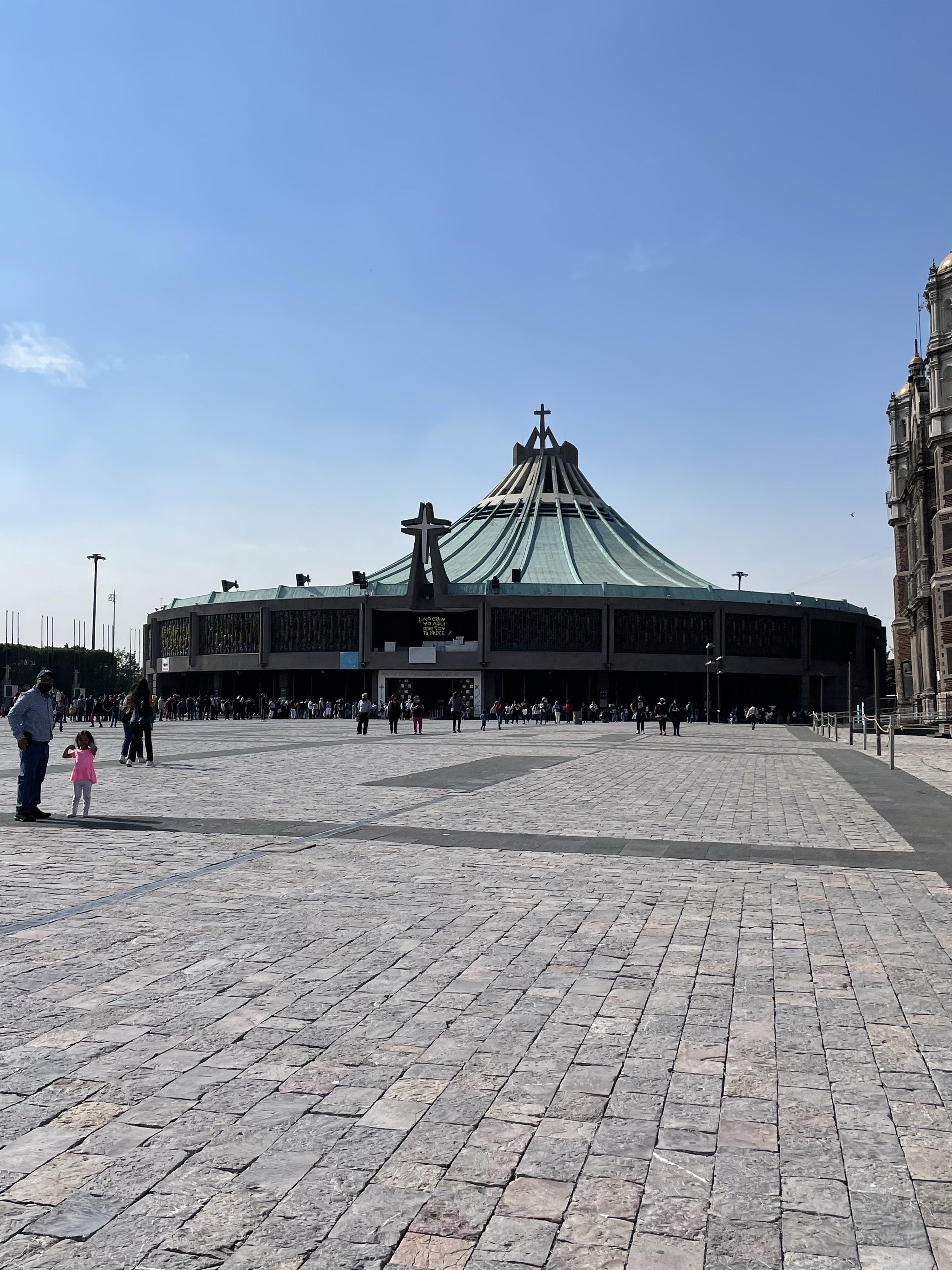 The Basilica and all the other buildings on the site, including the original basilica from the early 1700s were constructed to honor Saint Juan Diego and his visions and miracles of the Lady of Guadalupe. Sometime around 1530 a picture of the Lady of Guadalupe/Mary appeared on his cloak, which he said was a signal that the indigenous people should convert to Catholicism. There have been visitors/pilgrims to this site ever since. And many buildings have been constructed to provide a place for them to pray.