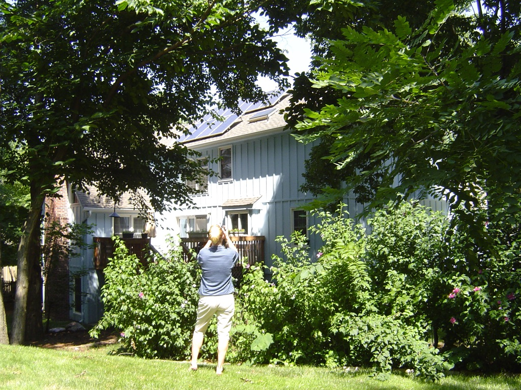 It took a while to get everything ready. Permits were needed. The panels and batteries had to be ordered. The roof needed to be reinforced. The city inspector was at our home several times, climbing into the attic and checking the wiring through the house. She was quite excited to be part of this retrofit. Eventually the new rafters in the roof were approved; the electrical wiring was approved; the panels were put on the roof; and after months of anticipation the solar panels came online! It was exciting. Our neighbors came out to see the panels as well.