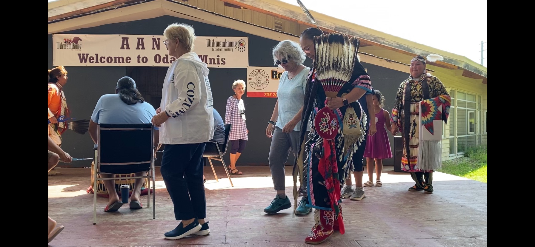 Finally we were welcomed to an outside theater where we got to see authentic First Nation dances and the drummers. I so enjoyed this experience. My favorite were the jiggle dress dancers. Finally we were invited up to dance with them and learn a bit. I had to get up there. One of the dancers stepped with me and showed me how to do it correctly!