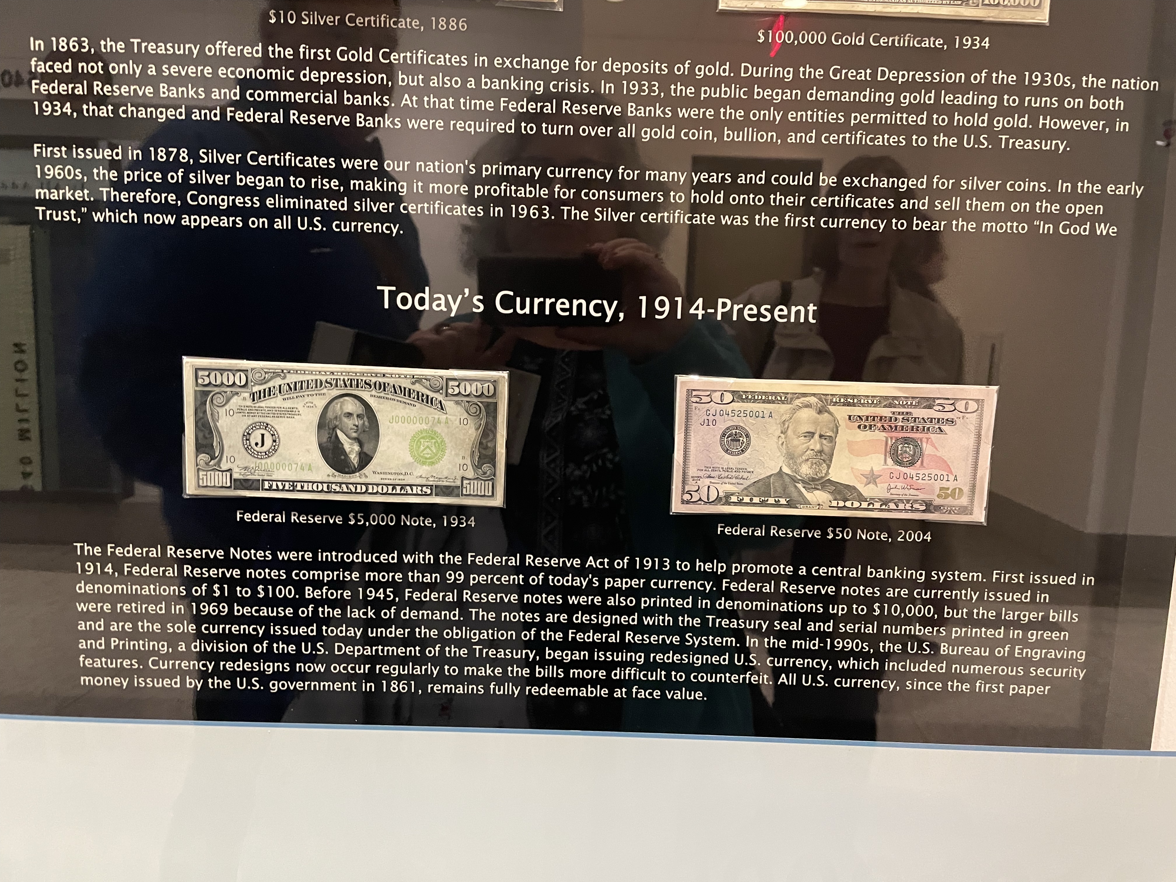 With all the talk about the Federal Reserve Bank, money and finance lately, we just had to see the Money Museum at the Federal Reserve Bank of Kansas City. Both of our children visited it when they were in school. I remember them bringing home a small bag filled with shredded money, which gave them pure joy, even though they could not use it.