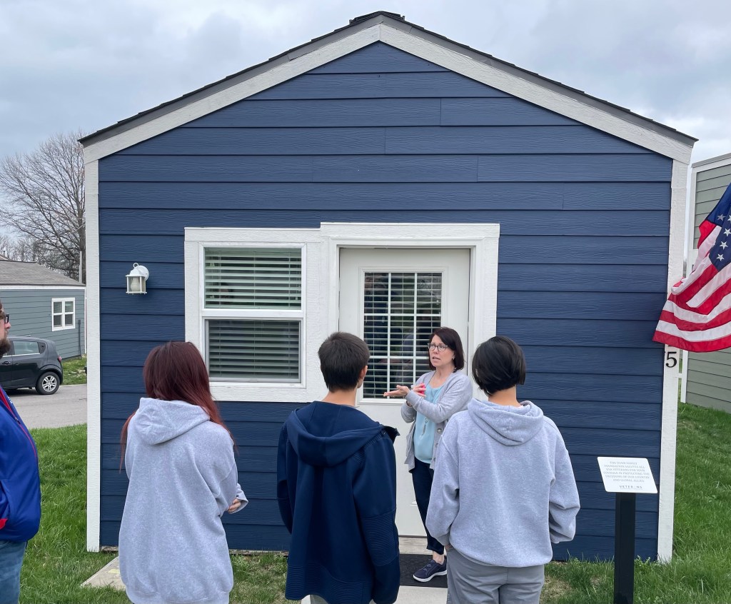 After Spring Break, the student council advisor, the three members of the student council and I went to the VCP campus to meet with Kristin and to tour it. I was so excited. I had been watching the creation of this village since it started. The idea of providing tiny homes for homeless veterans just touched my heart. And to actually get to tour it and see it in person and to learn more about it was wonderful. We got to go inside one of the tiny homes. We saw the ‘store’ area where any homeless veteran can come to get supplies. We learned about how they help all veterans.