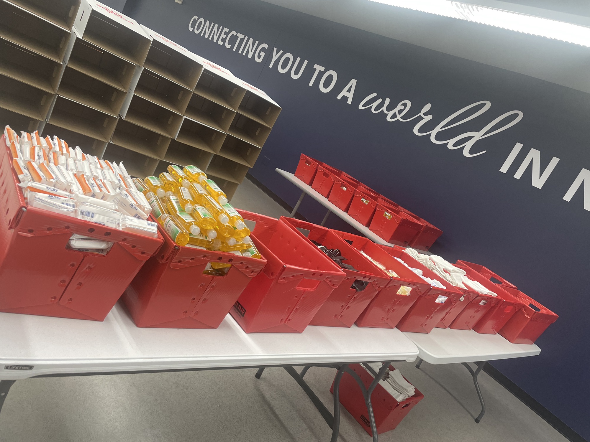 Our two-hour stint was delightful. At first, we were assigned jobs to get the supplies ready. I wrote information on to the PHK bags, while my husband had the opportunity to fold towels. This gave him much joy, because he has been saying for years that when he retires as a doctor (with over 40 years of practice), he wants to fold towels at the gym. I told him that he now has job experience to put on his application: one hour of towel folding at Heart to Heart.