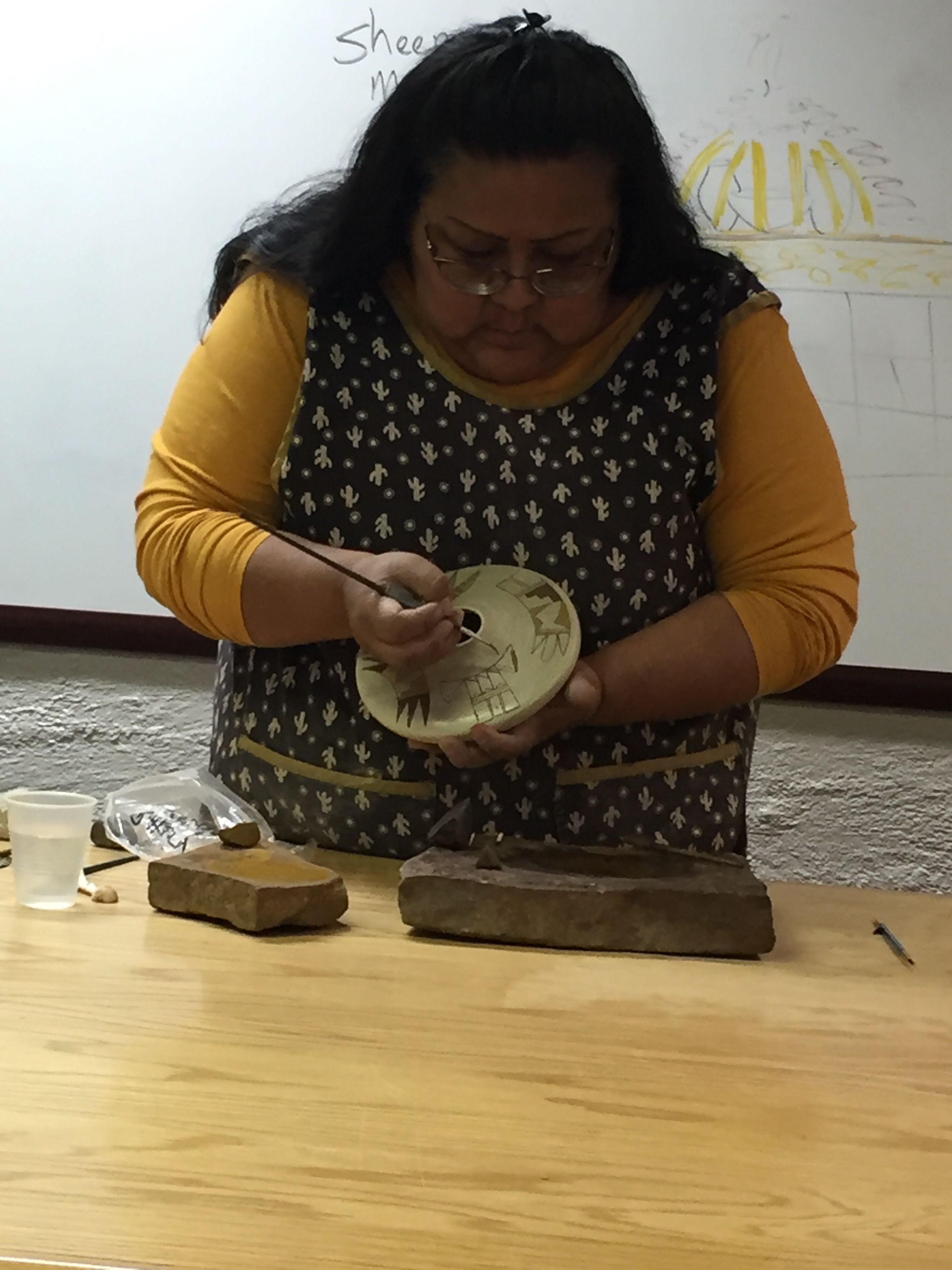 Watching Dorothy paint a pot.