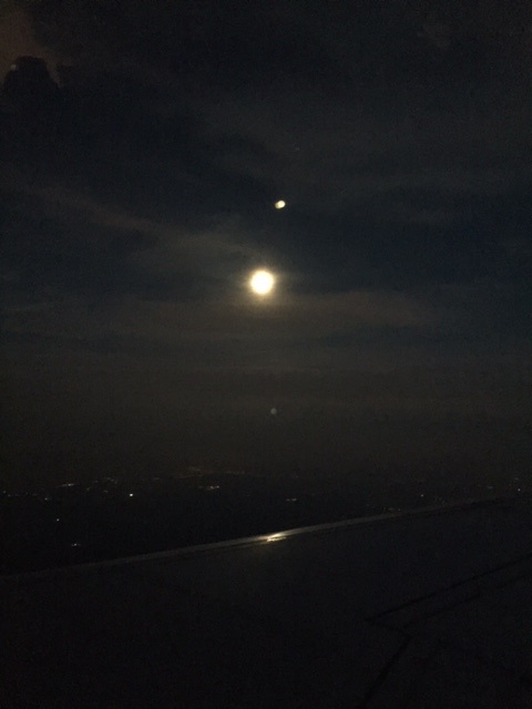 The moon from our plane window. It was supposed to be daylight when we arrived.
