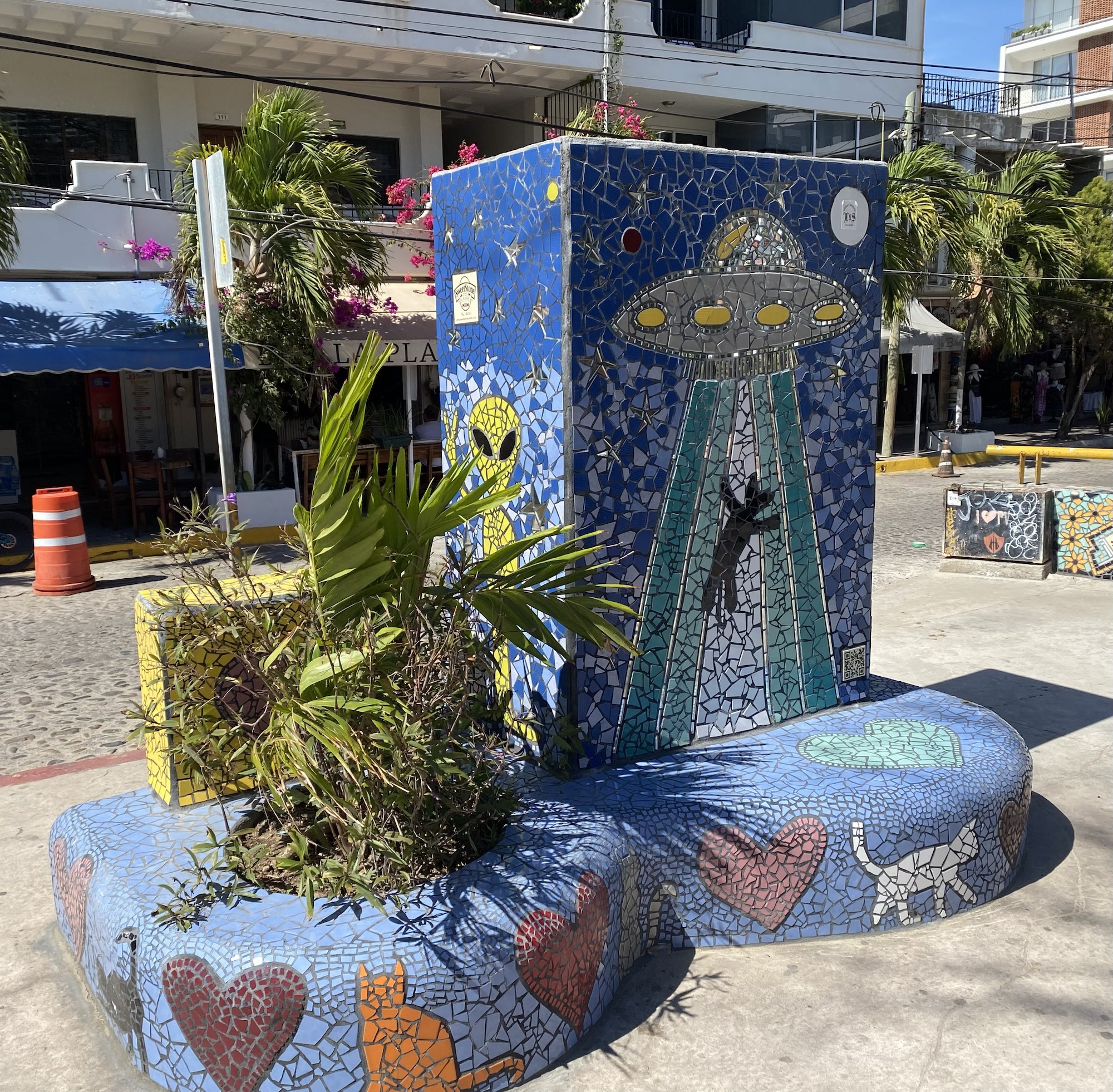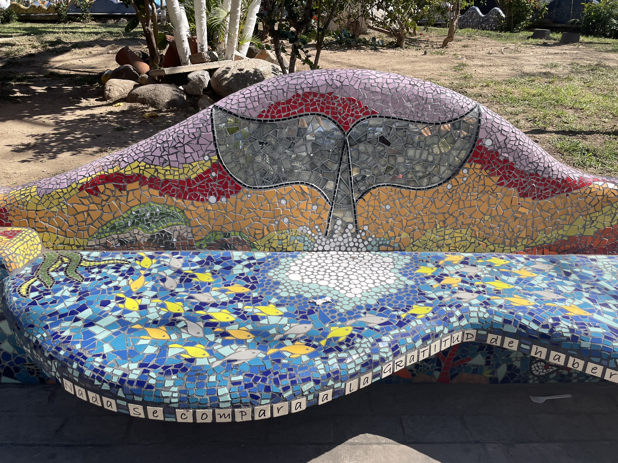 We also enjoyed seeing El Parque de los Azulejos (Tile Park), which made me think of a miniature Parque Quell in Barcelona, the lovely park designed by Gaudi. The tile benches and other mosaic inlaid objects are fun to walk through discover all the different designs. Each one is sponsored by a donor and their names are displayed on little plaques. The designs are not set on a specific theme, just want the donor wants. We were able to see one from the University of Kansas and one from the University of Michigan among the many beach and sport themes.
