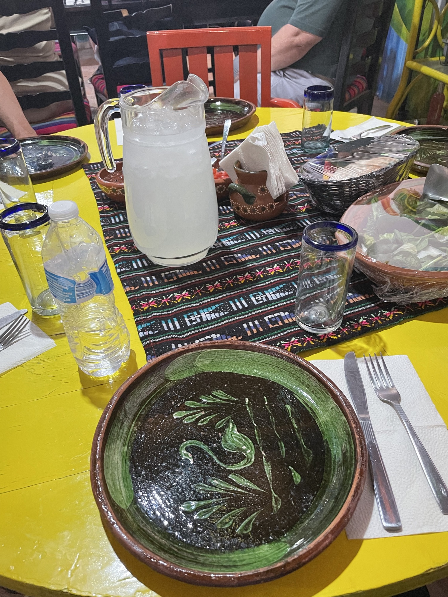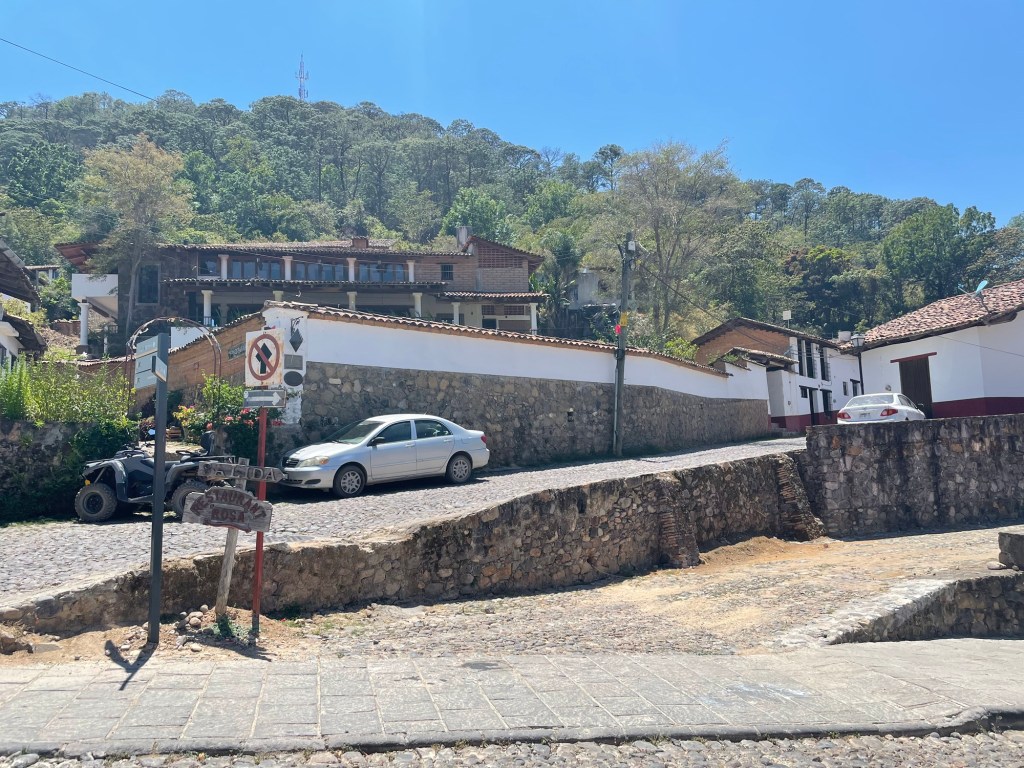 The original steep cobble stone streets are difficult to walk on and I think to drive. No busses took us there, only vans. And once I saw the streets, I understood. The Center of town has a lovely little plaza and shops. While there we walked to a restaurant that served us the absolutely best food we had in all of Mexico. They serve a specially prepared beef that really is so tender and delicately seasoned. I still savor the joy of eating there.