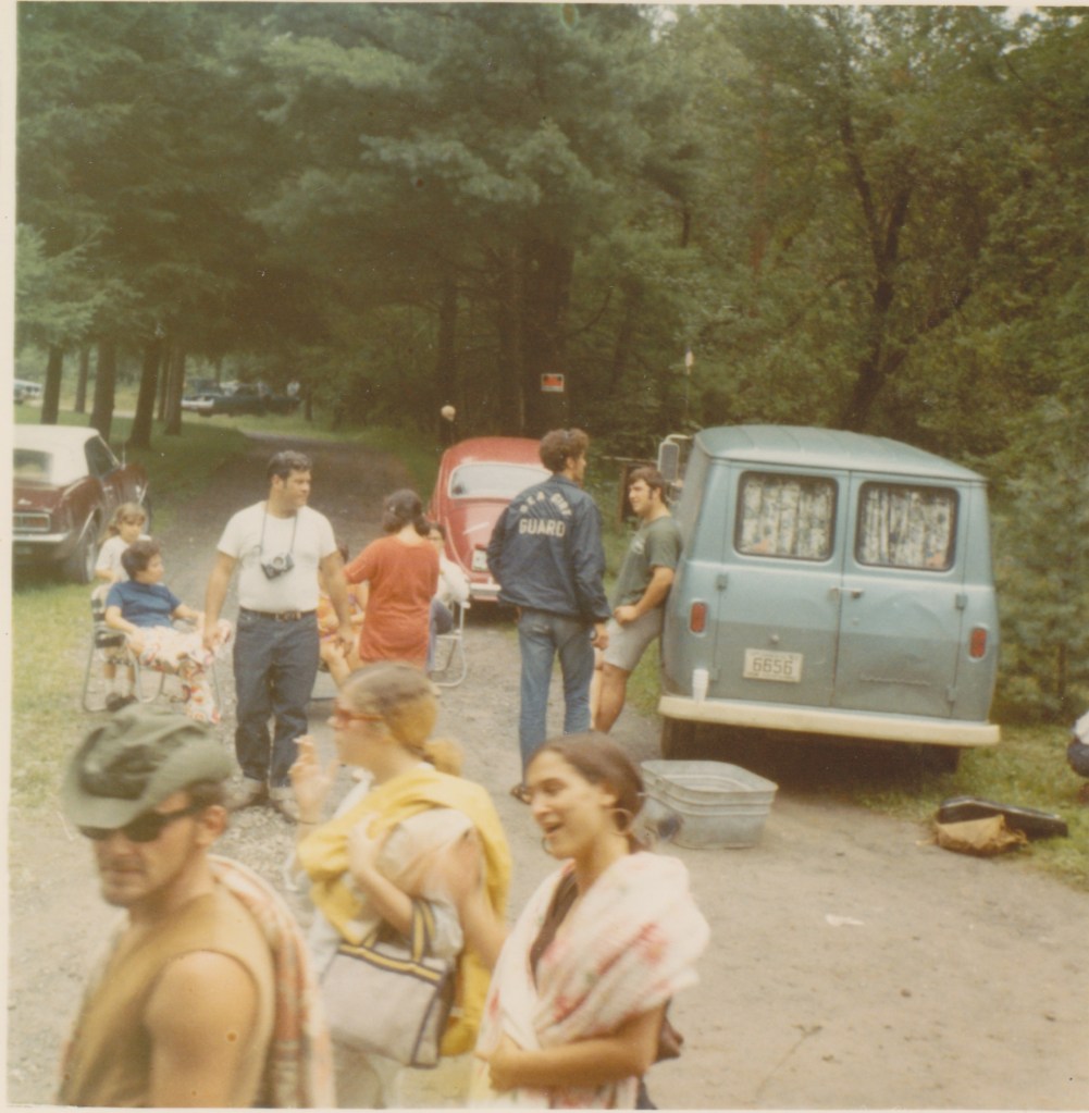 The walk is so peaceful now. Nothing like the chaos of 45 years ago. And perhaps calling the area Bethel Woods has more meaning. Yes, it is in the Township of Beth El. But how many realize that Beth El means the House of God? And here we are in this peaceful place of West Shore Road, with so much beauty around us. While we were in Kauneonga Lake this past weekend, my siblings and I were cleaning out the many items stored by our grandparents and parents over the more than 50 years our family has owned our house. We found some photos from the Woodstock weekend taken from our driveway. Our dad then is almost 20 years younger than my brother and I are now! While walking the path to Woodstock, I could not help remembering all the cars and the people who were there 45 years ago. I think of all those hills along the way. The only way to get anywhere that weekend was by foot or by horse. I remember the mounted police officers riding past our house to get up to the concert.