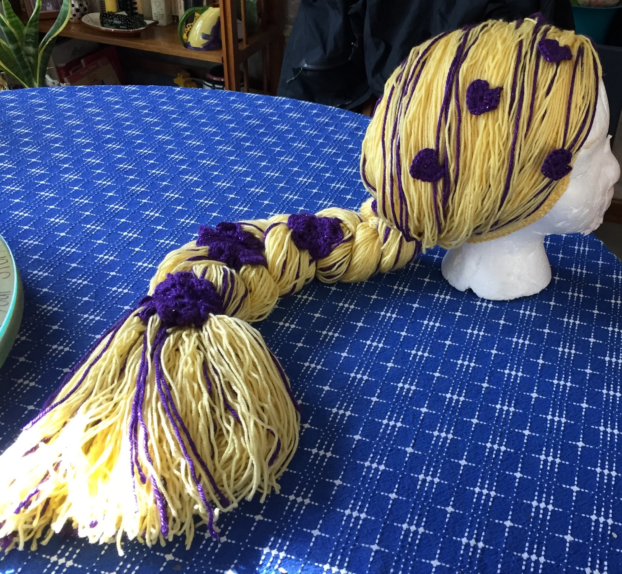 One of the most important blankets I made was for a toddler going through chemotherapy. I made a bright and cheerful blanket that I then added a giant heart. When I gave it to her in the hospital, I told her it was me hugging her. I later made her a yarn wig so that she could have long hair and be like Elsa from Frozen.